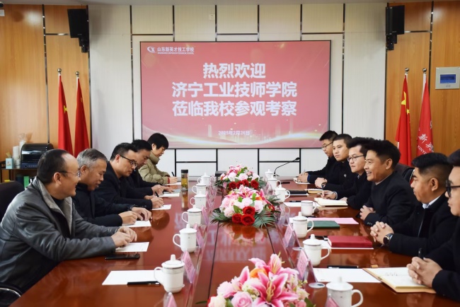 2月26日上午,怀揣着对职业教育发展的热忱与探索之心,职教高考部主任王怀强带领骨干教师一行8人,走进山东新英才技工学校,进行了一次深入的参观学习活动。此次活动旨在通过实地考察与交流,促进两校之间的经验共享与合作,共同推动教育教学工作高质量发展。